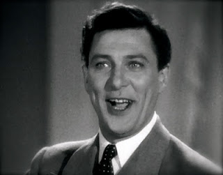 We meet Carl Brisson at the Golden Oriole, a nightclub where he takes requests and performs standards like “All of a Sudden My Heart Sings” to an appreciative proxy audience, sit-ins for the listeners at home, some of whom would have seen Brisson in person and may well have resented being drawn in by the performer only to be short-changed as he, having invited the diegetic (or built-in) crowd to stand up and dance, walks over to one of the tables for a tête-à-tête with a female and no doubt attractive newspaper columnist whom he feeds his stories of crime and romance.