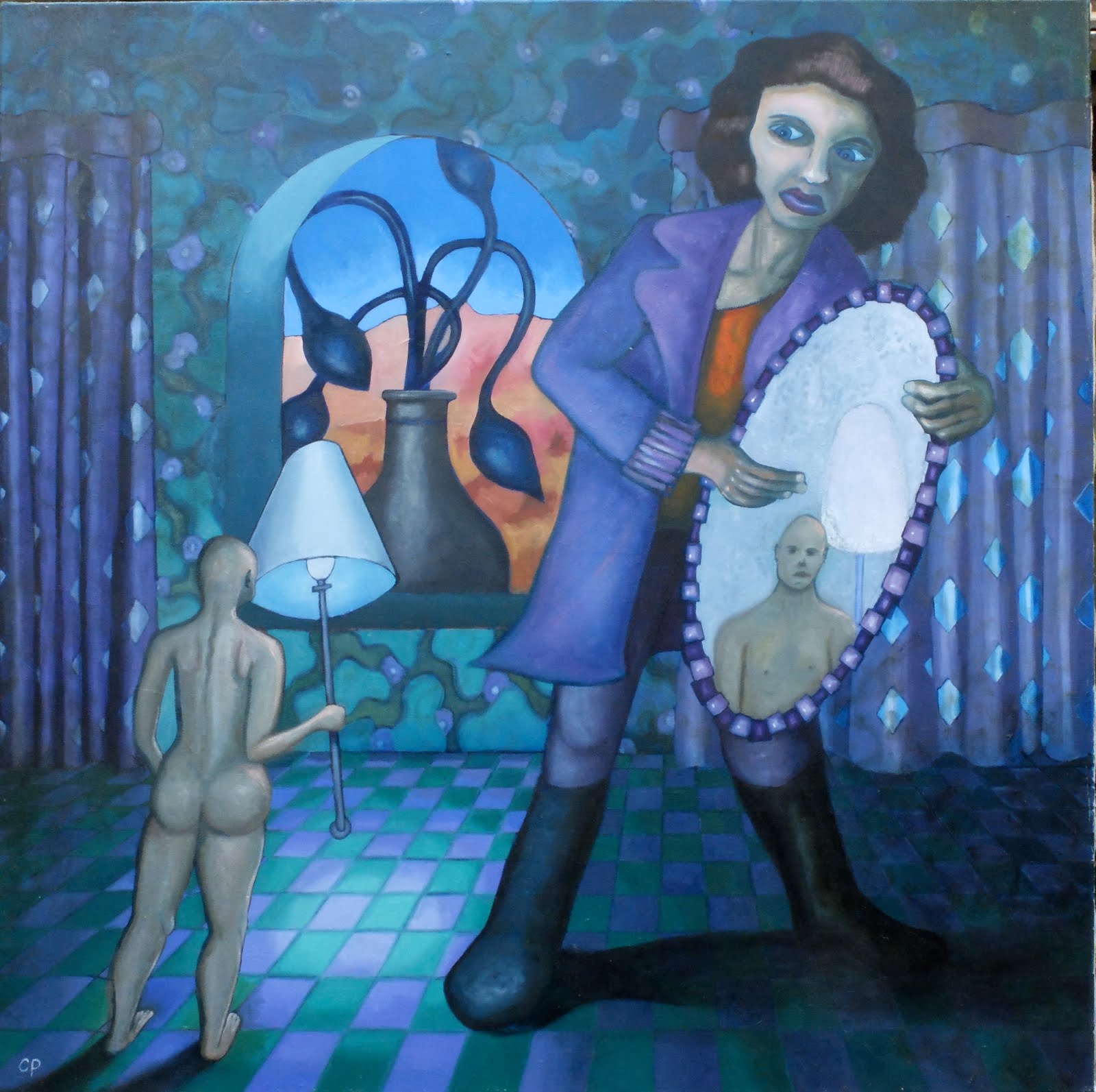 Ceri has experimented in many media, including sculpture, video and collage. He has also been an abstract painter. Figurative painting is where he is at the moment. And that moment is also a time of introspection – a self-conscious exploration of the role of the artist and the function of art.