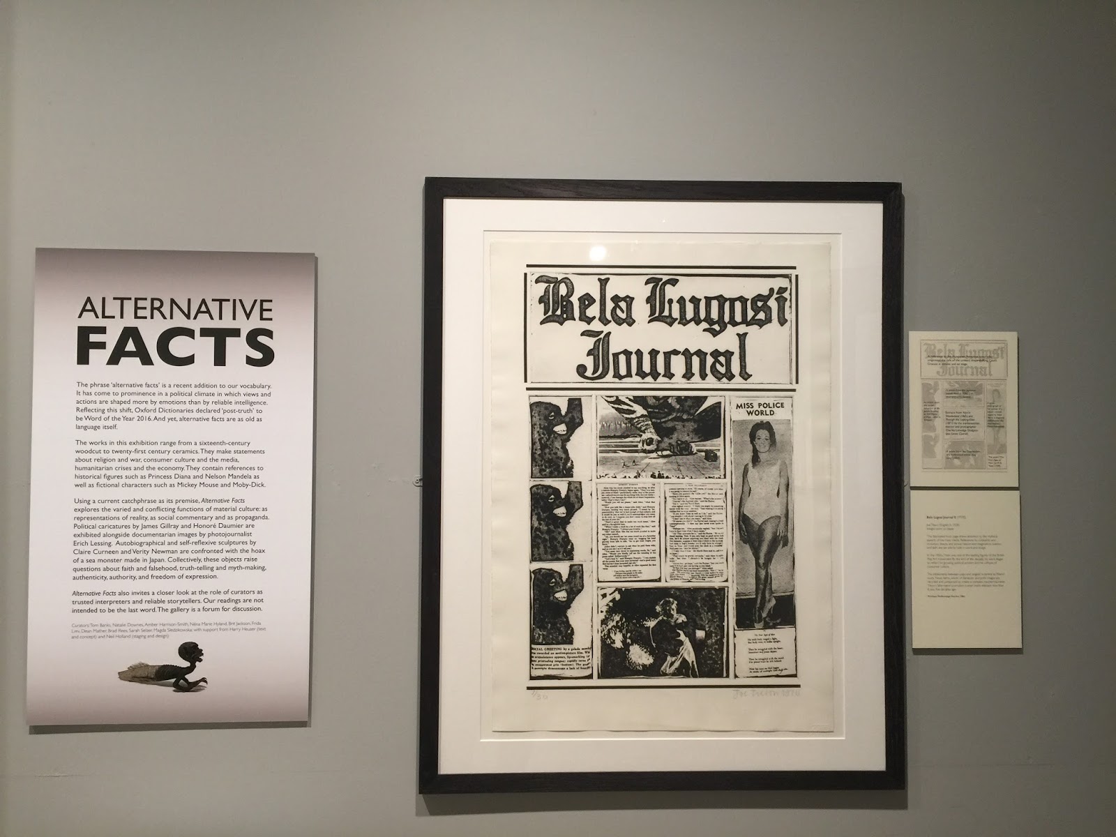 Using a current catchphrase as its premise, Alternative Facts explores the varied and conflicting functions of material culture: as representations of reality, as social commentary and as propaganda. Political caricatures by James Gillray and Honoré Daumier are exhibited alongside documentarian images by photojournalist Erich Lessing. Autobiographical and self-reflexive sculptures by Claire Curneen and Verity Newman are confronted with the hoax of a sea monster made in Japan. Collectively, these objects raise questions about faith and falsehood, truth-telling and myth-making, authenticity, authority, and freedom of expression.
