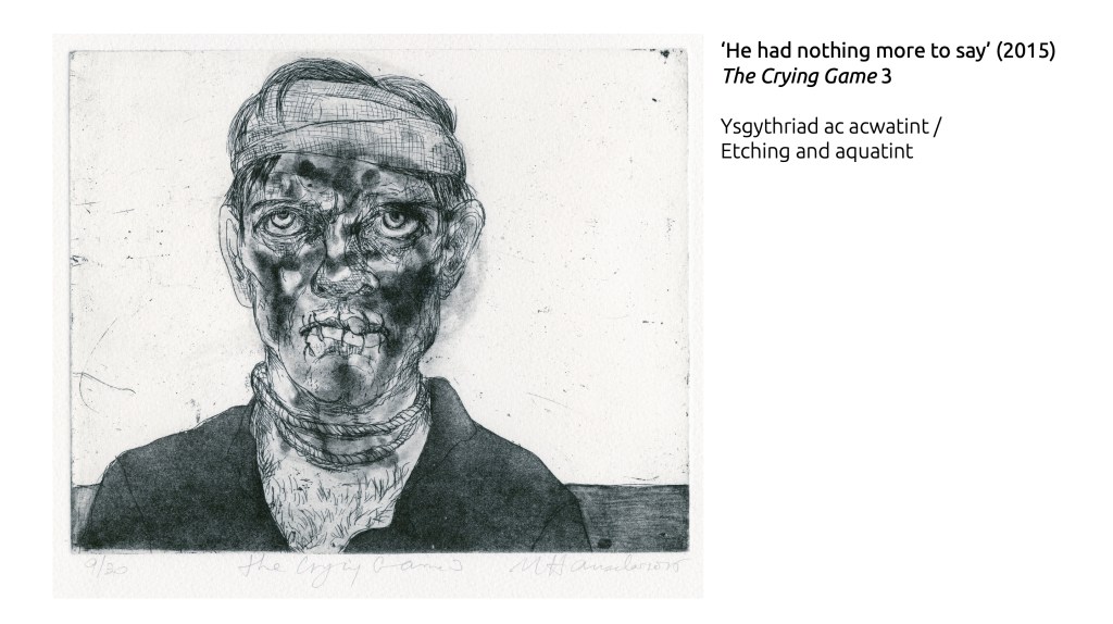 The latest in a series of projects that I, assisted by the School of Art’s Senior curator Neil Holland, have carried out annually since 2013 with undergraduate students of my curating module at Aberystwyth University, Crying Bleeding Kicking Screaming conflates the titles of two of Hanselaar’s print portfolios: We’re all bleeding (2012) and The Crying Game (2015/17).