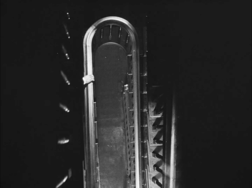 We watch it furtively reaching for a doorknob, deftly handling a knife and poker, stopping short of fondling the hair of one of the Avenger’s potential victims, and clutching the banister as it glides, as if of its own accord, down the staircase of the Buntings’ home.