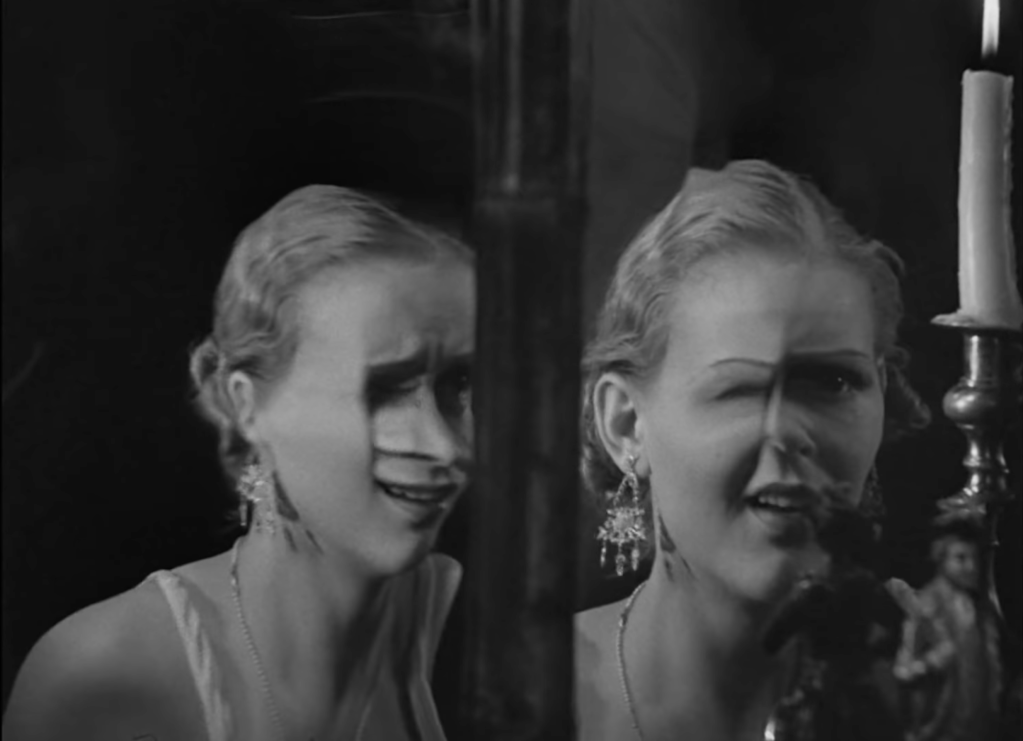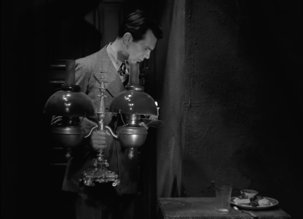 The feat deftly accomplished by the adaptation, which—with the major exception of its soft Hollywood ending—renders its source with remarkable fidelity, is not only the translation of metaphoric benightedness. The Old Dark House playfully subverts the mirror and lamp binaries, traditional views predicated on the simplistic notion of mirrors as accurate reflections and lamps as furnishings in the reliable service of shedding light on matter.