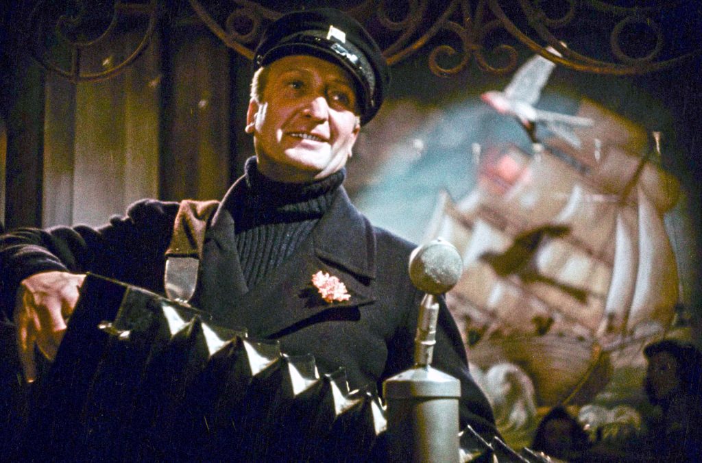 The recording encourages those German-born museum visitors who immediately associate the accordion—as I did—with romanticized images of seafaring, the ever-white “La Paloma” and the fair-haired German actor Hans Albers—a cultural icon burdensomely bequeathed to me by my grandparents’ generation—who played the instrument in Grosse Freiheit Nr. 7, a film produced in although ultimately banned by the Third Reich, to stop singing the same familiar tune of their imperialist and colonizing forebears and listen out instead for the sound of voices or, as Aguilar’s Ocean Echoes (2022) proposes, the voices of sounds other than those of their presumed own by heritage.