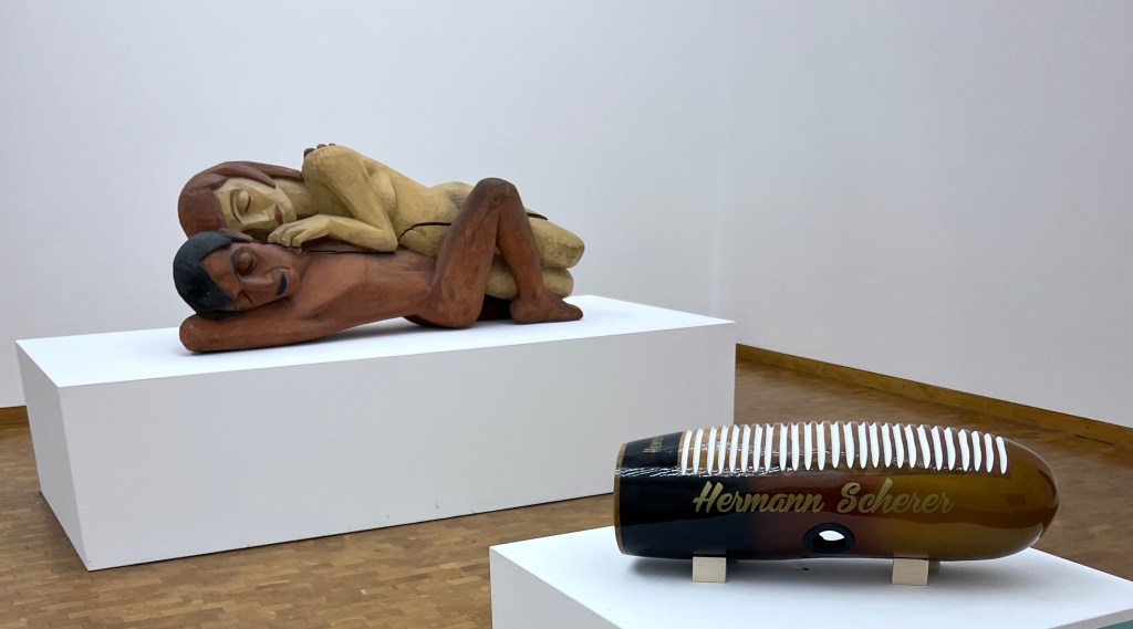 What would happen if a güiro were to sneak up—as I misremembered that it had—on Geburt des Menschen (1919), a sculpture by Otto Freundlich prominently on display at Museum Ludwig? So positioned, the güiro could serve as a reminder that, not unlike marginalized cultures, modernist art and its makers likewise faced existential threats in the past. Freundlich was killed at Majdanek extermination camp, the victim of a fascist regime that defamed his work as “entartet.” I hear you, the güiro might say.
