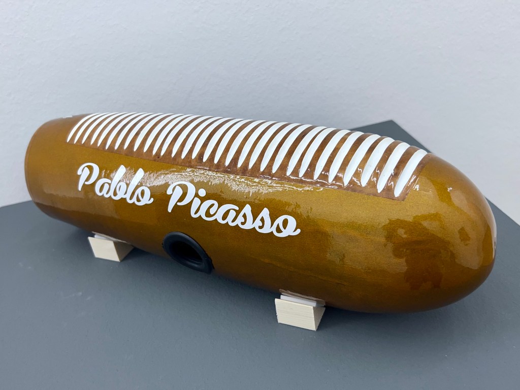 In an anticolonial move, Aguilar strategically yet seemingly randomly inserts a range of colouful güiros, Latin-American percussion instruments made of hollowed-out gourds, into the museum environment, where they are brought into contact—commune or compete, depending on our reception—with works by European modernists whose names he inscribes on each instrument’s surface.