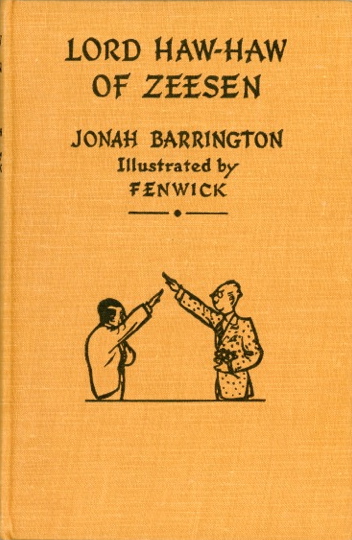 When I picked up this slim and curious volume, Lord Haw-Haw of Zeesen (1939), at an antiquarian bookstore in the Welsh border town of Hay-on-Wye, I was puzzled, to say the least. I mean, I had heard about—and had listened to recordings of—the notorious Lord Haw-Haw, the fascist broadcaster whose role it was to demoralize the British, to make them turn against their own government by convincing them that to side with the so-called Third Reich was the safest, surest way to march forward. Yet here was a book—written pseudonymously by a journalist calling himself Jonah Barrington and cartoonishly illustrated by an artist who went by the name of Fenwick—that turned propaganda into satire by lending form and features to a voice of terror that was infiltrating the home front.