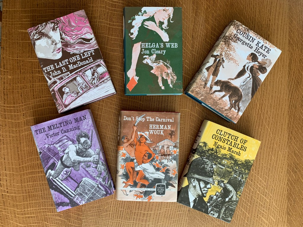 A novelist friend and avid reader, who had come from London for a visit, treated me to a volume of my choice. Three of them, in fact, as the £5-for-three deal made it unnecessary to be quite so discriminating. I passed up on erstwhile bestsellers by A. J. Cronin and Pearl S. Buck, both of whom had vanished from the display a day later, when I returned for another three titles (all six are pictured above). My first choice, however, had been Herman Wouk’s Don’t Stop the Carnival (1965).