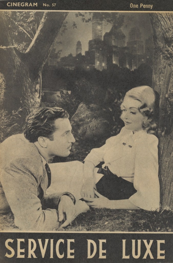 Cinegram is a series of souvenir programs that, for the price of a penny, were sold at British movie theaters during the late 1930s. Each sixteen-page booklet contains black and white images of scenes from the film, a castlist, portrait shots and signatures of the leading actors, tidbits about the players (and, occasionally, star directors), as well as a summary of the plot.