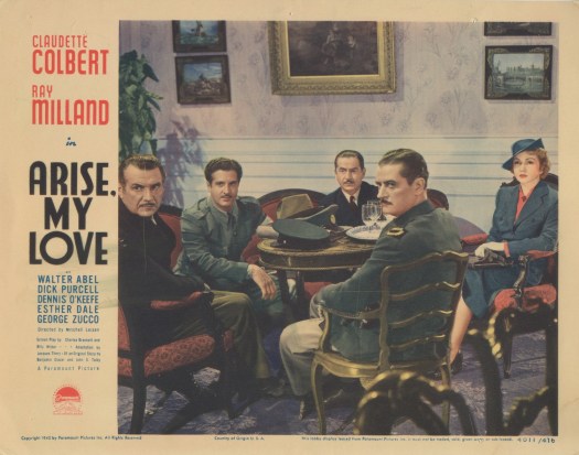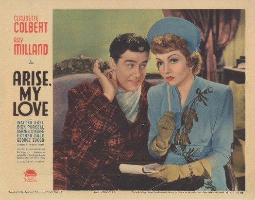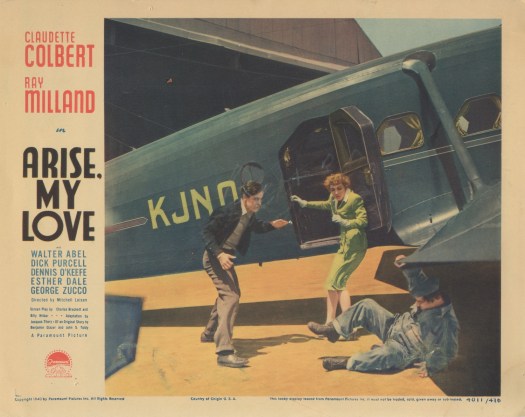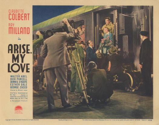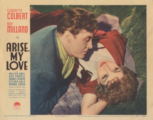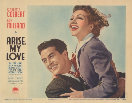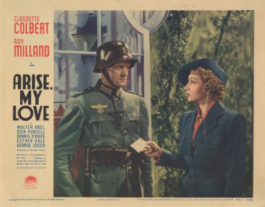 Grandmother would not have seen Arise, My Love (1940). Colbert’s favourite among her own movies, it was never released in Germany. In the United States, it played in cinemas over a year prior to the attack on Pearl Harbor. At that time, the US still maintained its neutrality. As the lobby cards suggest, the film’s plot is an uneasy mixture of battle of the sexes and the fight for survival.