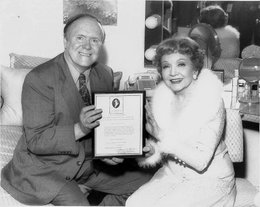 Larry first met Claudette when he was living in Hollywood. Decades later, he wrote his illustrated biography of her. Around that time, Colbert starred on Broadway, so Larry got an invitation to visit with her backstage. He gave her a lifetime achievement award named for his uncle, James R. Quirk, the editor and publisher of Photoplay. If anyone suggested to Larry that he had never actually met Claudette, he would proudly hold up this picture of them together and smile.