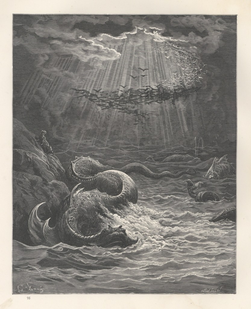 Harryhausenโs โhomage to Dorรฉ,โ a key drawing for Mysterious Island (c. 1960); reproduction for label display