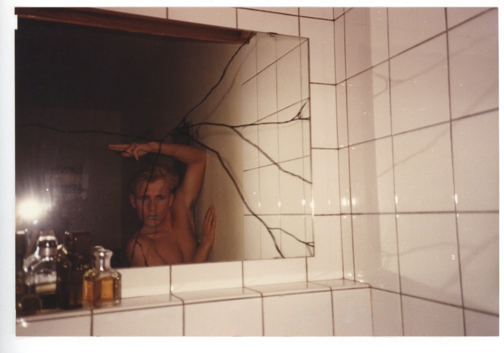 Retroactive Selfies is an intimate portrait of queer self-representation in an era before social media. All images existed first as analogue photographs. In some of them, my hand can be seen holding the camera as I gaze into a mirror. Other shots were created with the aid of a timer.