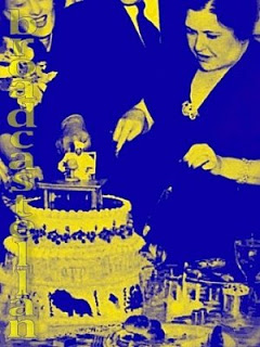 As I add another candle to the cupcake set aside for the celebration of my fourth blogging anniversary and to be consumed in the solitude of my virtual niche, I am once again wondering whether I should not have taken a scandal sheet out of Louella Parsons’s cookbook. You know, serving it while it’s hot, with a pinch of salt on the side. Dishing it out in a bowl the size of China, a tidbit-craving multitude hanging on your gossip-dripping lips. As the first name in name-dropping, Louella (seen below, cutting her own birthday cake, anno 1941) might have done well as a webjournalist, just as she had on the air, despite a lazy delivery that piled fluffs on fluff and a flat voice that makes Agnes Moorehead sound like a Lorelei by comparison. Her hearsay went over well all the same, its nutritional deficiencies giving none cause for contrition.