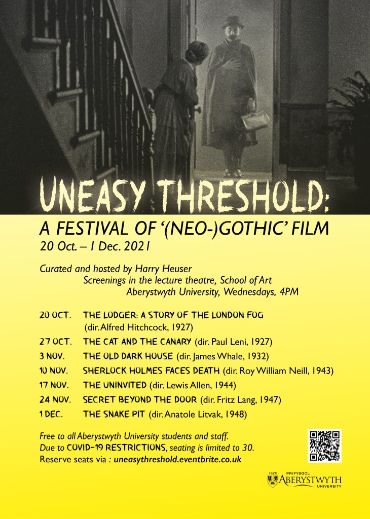 The first series of screenings, coinciding with my previous iteration of “Gothic Imagination,” was titled “Treacherous Territories.” The phrase was meant to capture that challenge of defining and the dangers of inserting a mutable term such as ‘gothic’ into the lecture theaters and seminar rooms that cannot quite accommodate, let alone confine it.