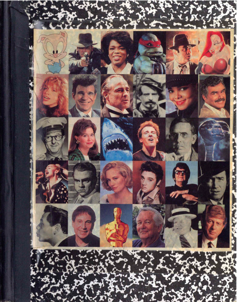 The cover of my 1991 journal, with an image collage borrowed from a copy of Entertainment Weekly