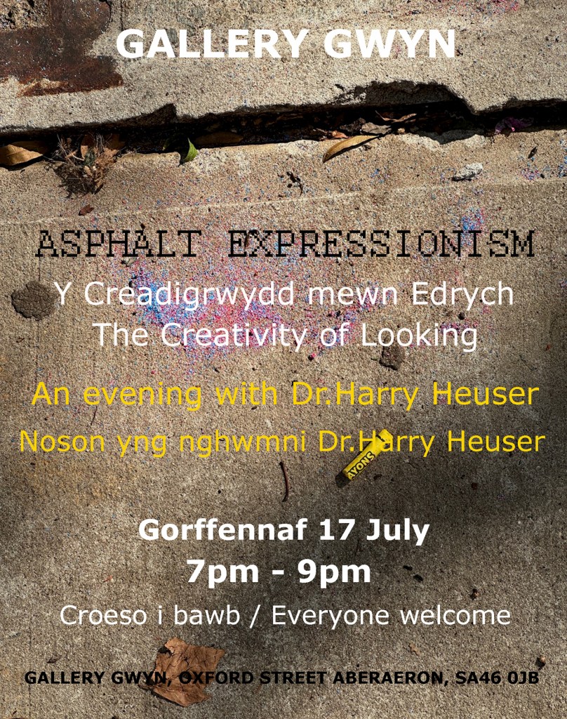 I have been asked, at some point during the run of my exhibition at Gallery Gwyn, to give a talk. I requested that the event be announced as ‘an evening with.’ Asphalt Expressionism was intended to be inclusive and interactive, and the scheduled get-together, likewise, should promote exchange. A conversazione, perhaps, but not a lecture.